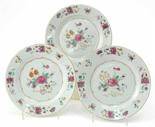 A set of three Canton side plates, brightly painted with flowers, 6.5in. £60-80