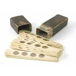 A set of twelve microscope slides, each bone slide housing four various round specimen cells, 4.25 ins £150-200