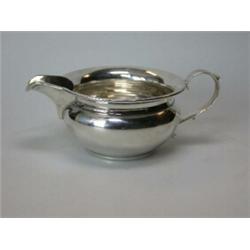 A silver cream jug, maker CE, London 1926, of compressed circular shape with broad spout and scroll.