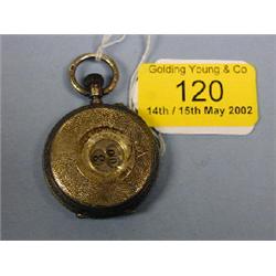 A silver fob watch, no dial, hour and minutes shown through aperture on case front, bezel wind,