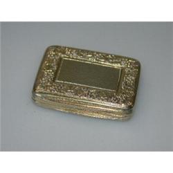 A silver gilt vinaigrette, incompletely marked, rectangular, the engine turned cover with fruiting..