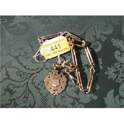 A silver longard, of multi-link and bar construction, with attached fob, 14 1/2" long, 54.4gms.