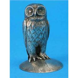A silver model of an owl, perched on a textured dome base, London 1979, 3.75ins £150-200