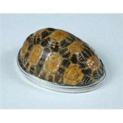 A silver mounted terrapin shell snuff box, circa 1800/1810, unmarked, of oval outline, with flush hinged cover engraved with a crest, initialled, 8.5cm £100-150