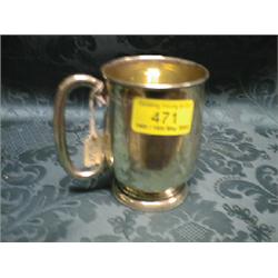 A silver mug with loop handle, on circular foot, engraved with a woodpecker, Sheffield 1939, 4" high, 6ozs.