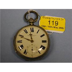 A silver open face fusee pocket watch, white enamel dial, heavy Roman numerals, subsidiary secon