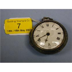 A silver pair cased open face verge pocket watch, outer case with rococo embossed decoration,