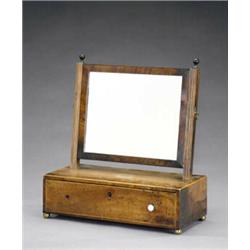 A small Regency mahogany rectangular toilet mirror, the chest fitted with a drawer, outlined with boxwood stringing, 13.5in wide, early 19th century