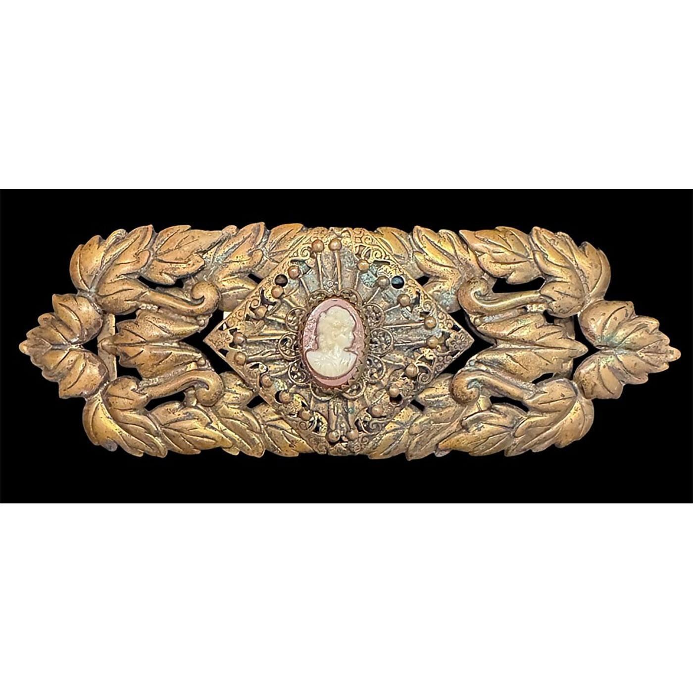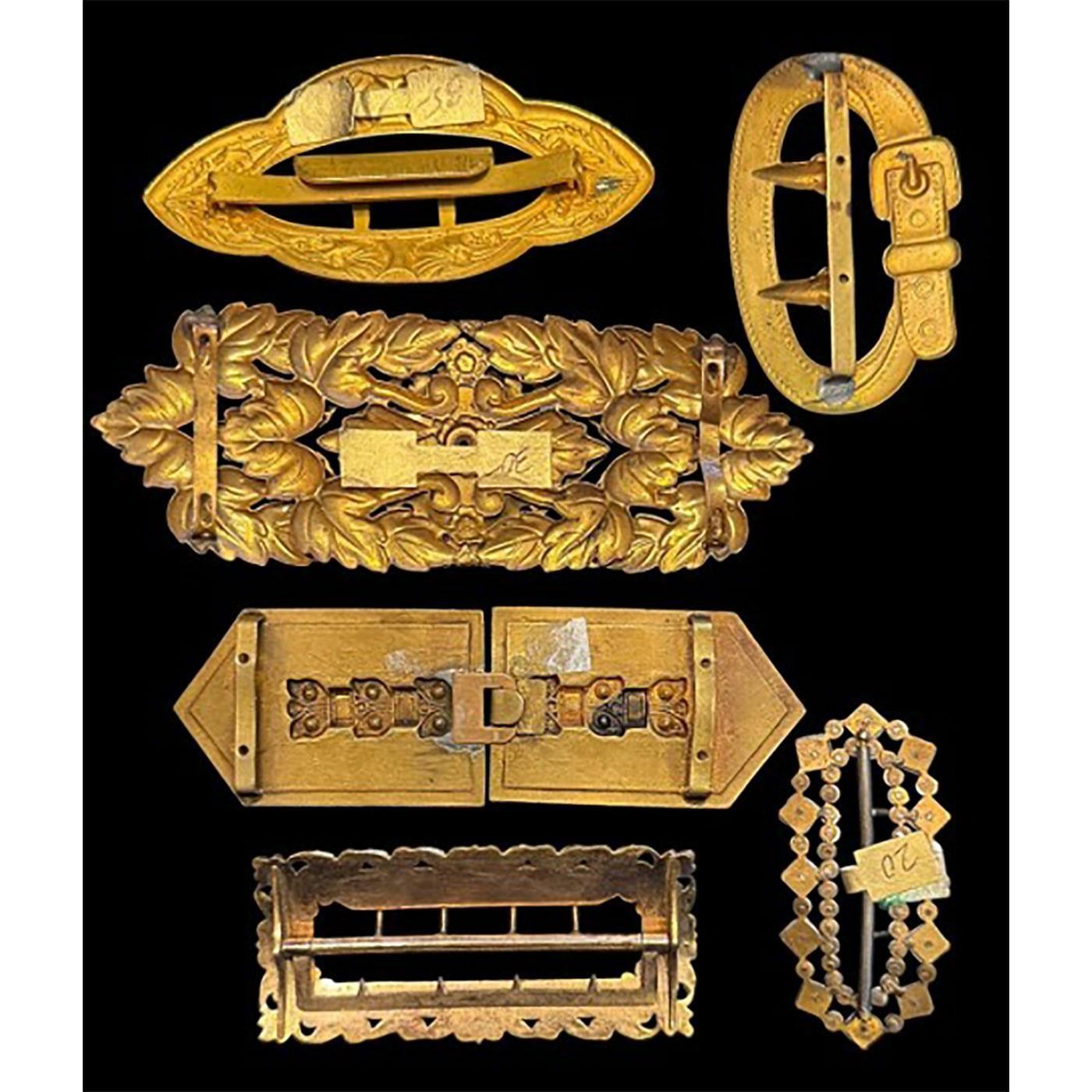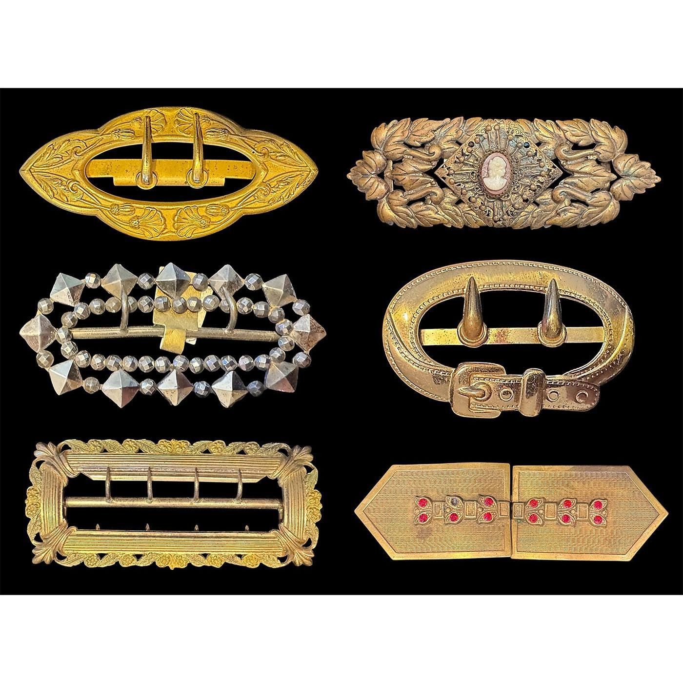 6 Large 1 and 2 pieced buckles including Cameo. This lot of buckles includes a cameo centered two piece example, a nice two piece example with red pastes, a cut steel example and more.