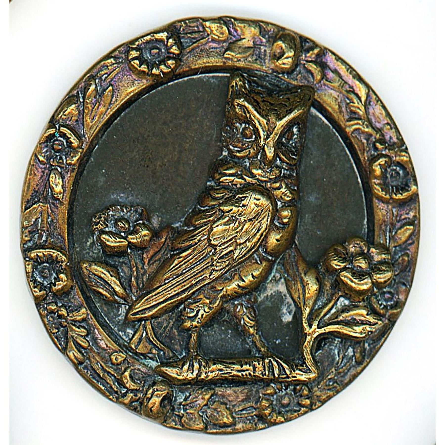 7 Medium/Large 19th-20th century assorted material examples. This lot includes a cool brass over carved back Lucite, a nice pique brass and pearl inlayed horn, a couple of 19th century black dyed horn as well as several brass pictorial birds including Owls.