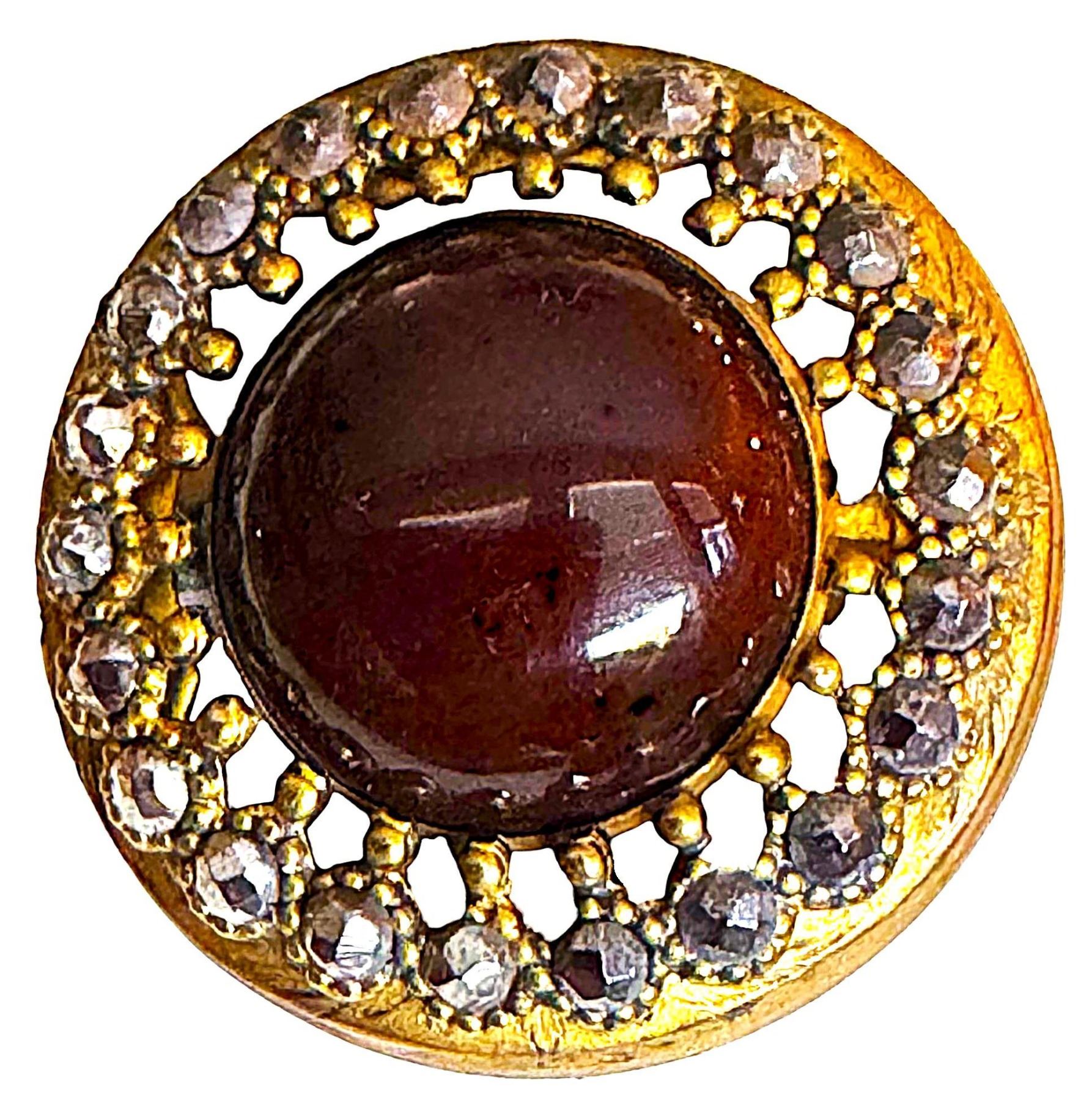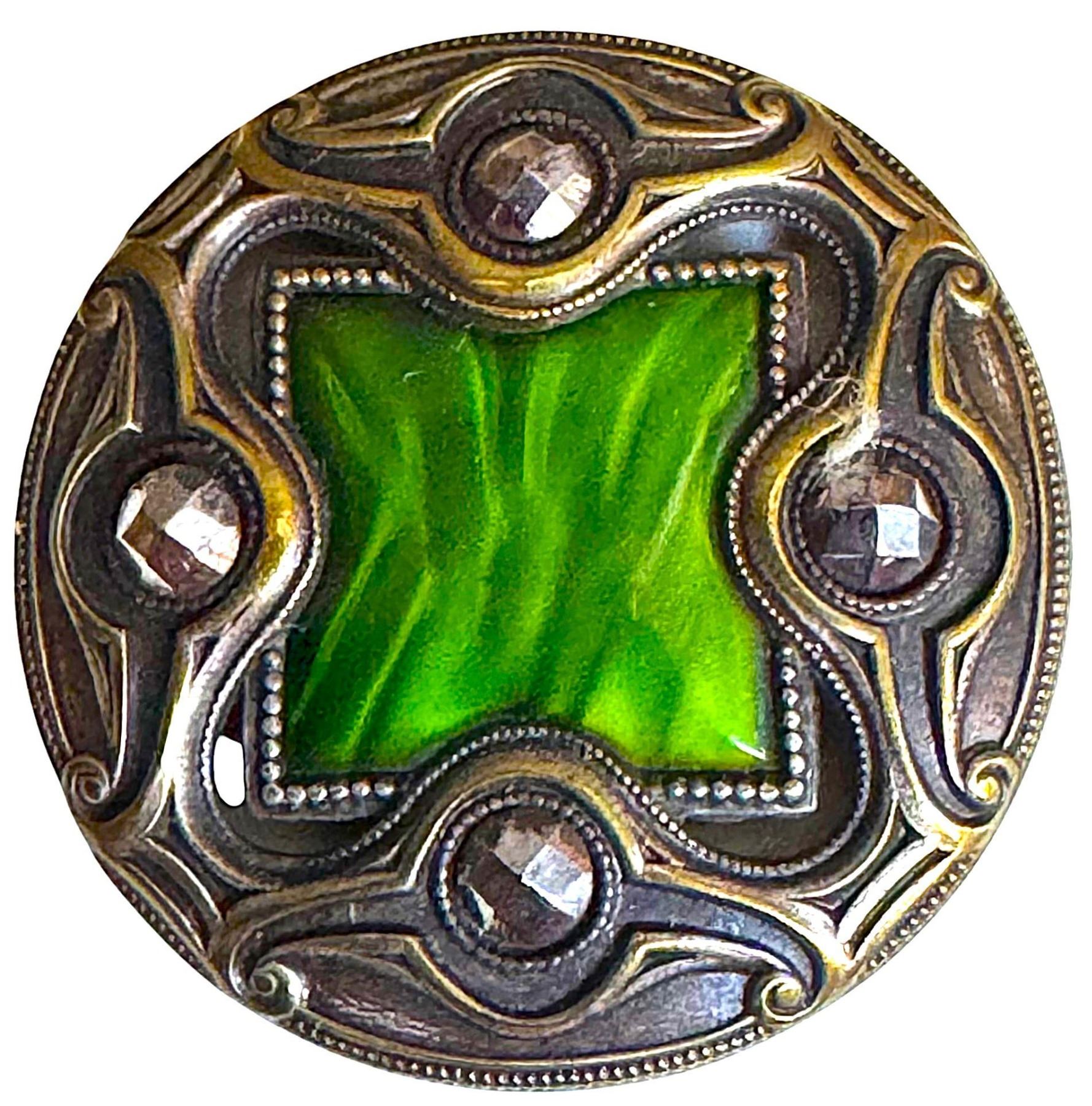 2 Large 19th century examples of true Gay 90's. Here we have two different and fine examples of the ever popular large jeweled buttons known to collectors as Gay 90's. Both are pierced and each has a different large jewel center.