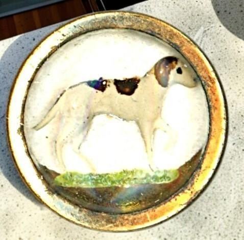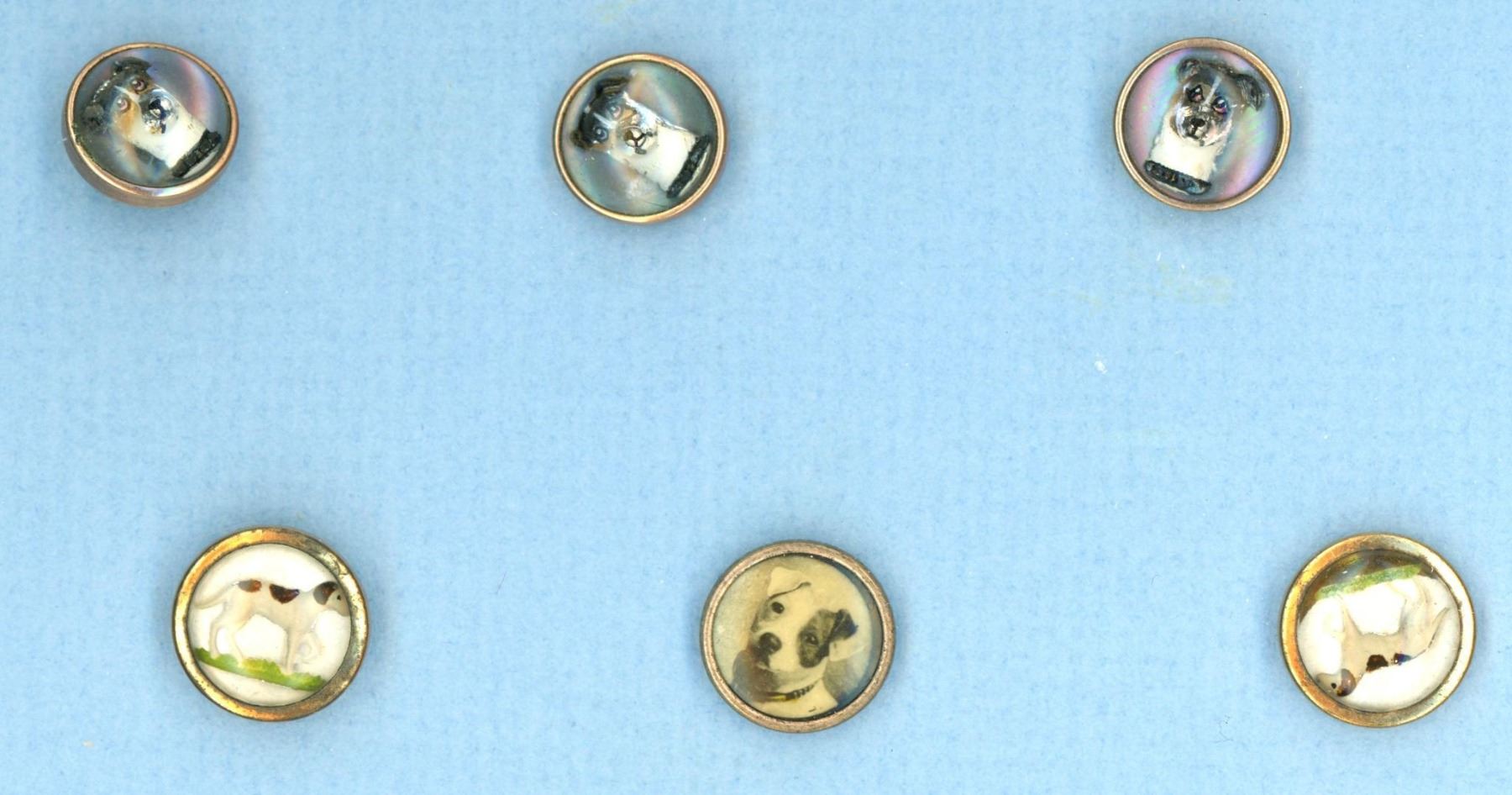 6 Small size 19th century examples with dogs on them. Here is a cute lot, it includes a litho example and 5 under glass examples all in high quality settings.