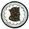 4 Medium/Large 19th & early 20th C. assorted technique examples. This lot of ceramics includes buttons in a black and white theme. The lot includes a white horse on a black basalt Wedgwood base, set in silver with backmarks on the silver and the Wedgwood. The lot also includes a wonderful large transfer black and white fable, a nice brass escutcheon on a black and white setting and more.
