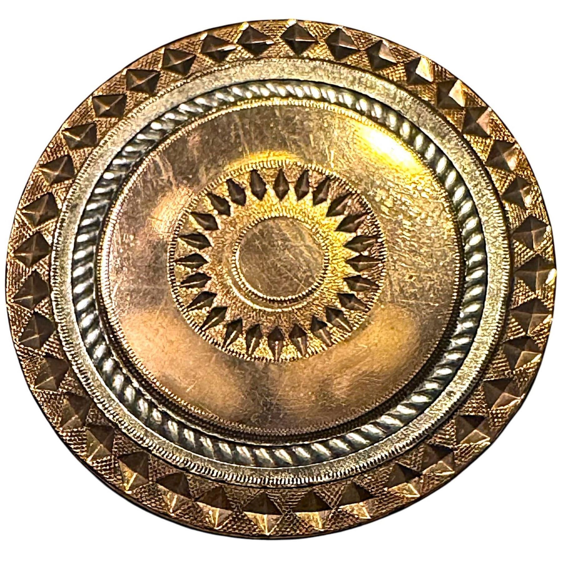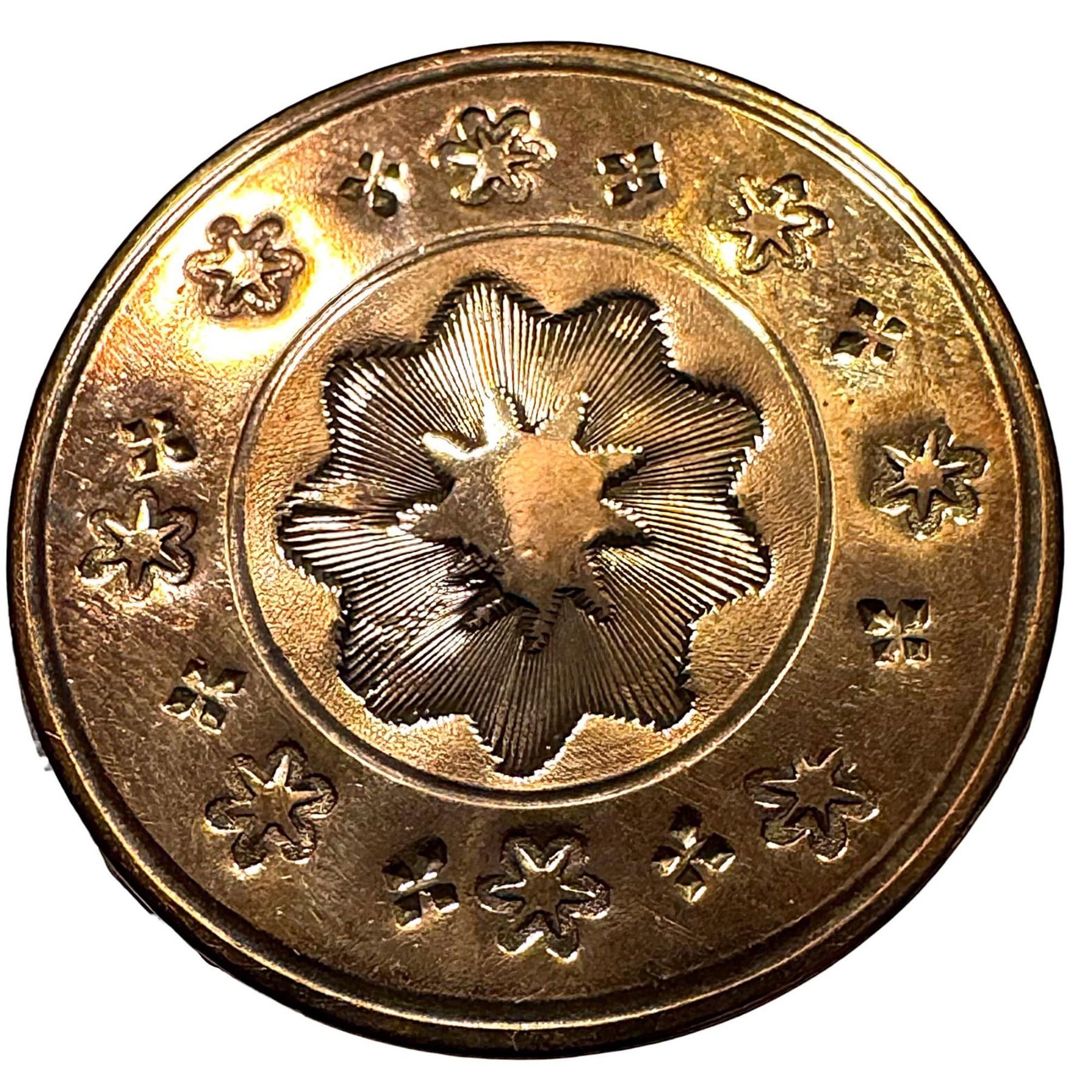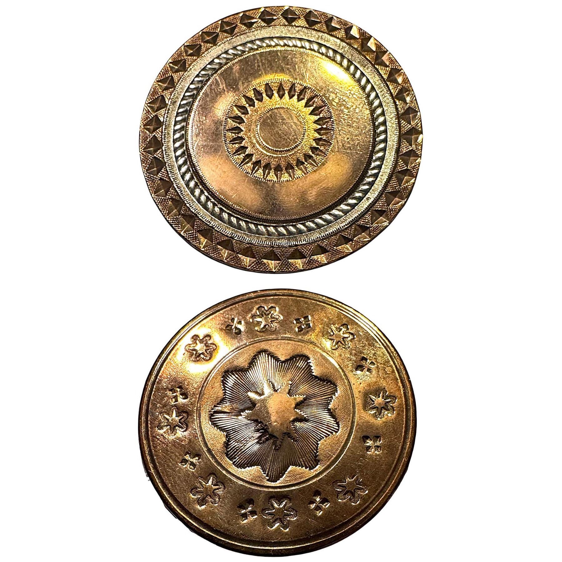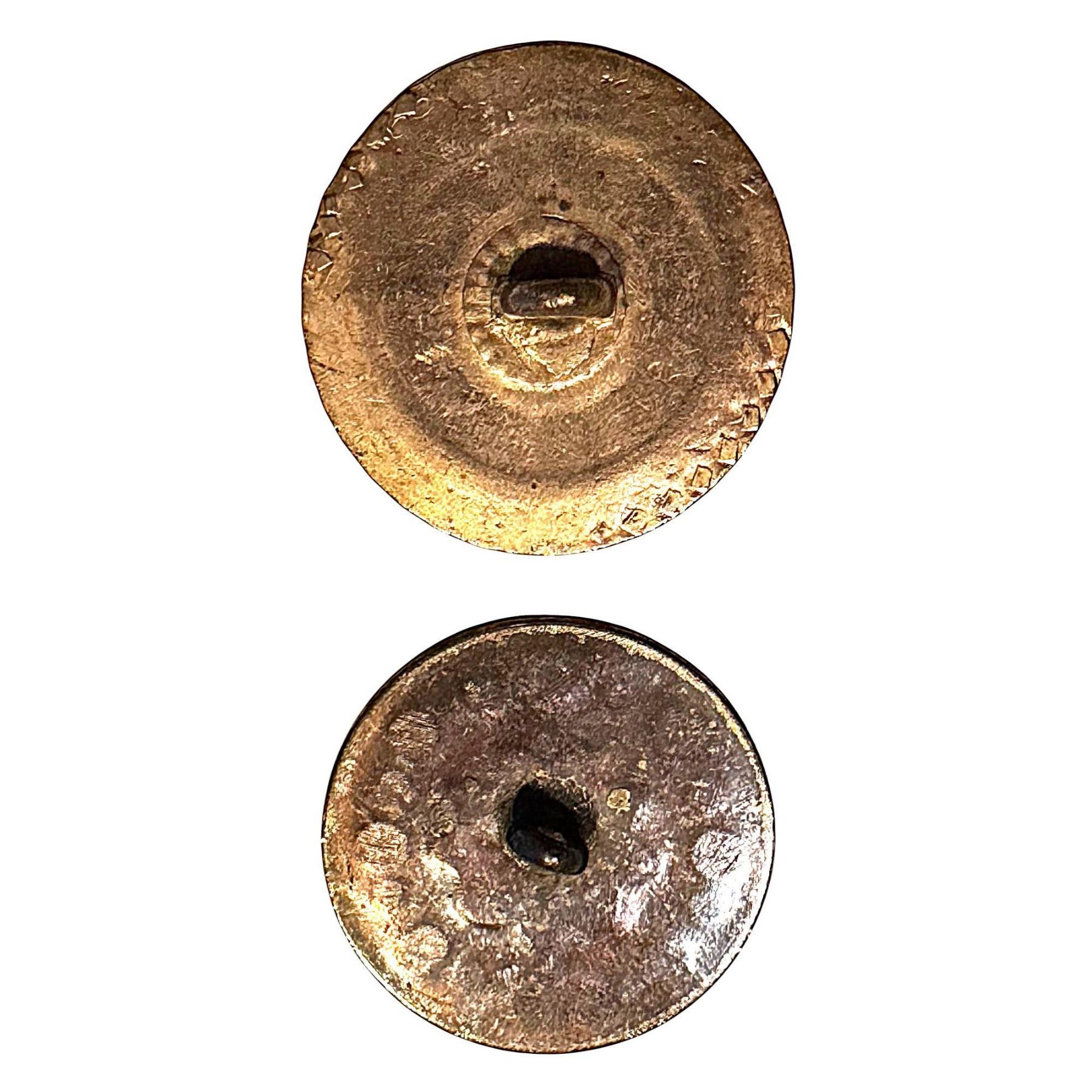 2 Medium size 18th century tooled copper buttons. Here we have two absolutely beautiful examples of 18th century craftsmanship. One example is a two color copper that has an inside border with silver, the other has a fabulous pattern design on it. Medium examples are actually rarer than the large examples so don't just pass this lot by.