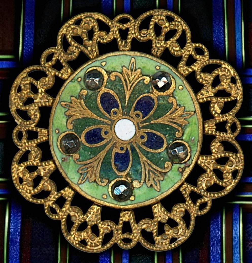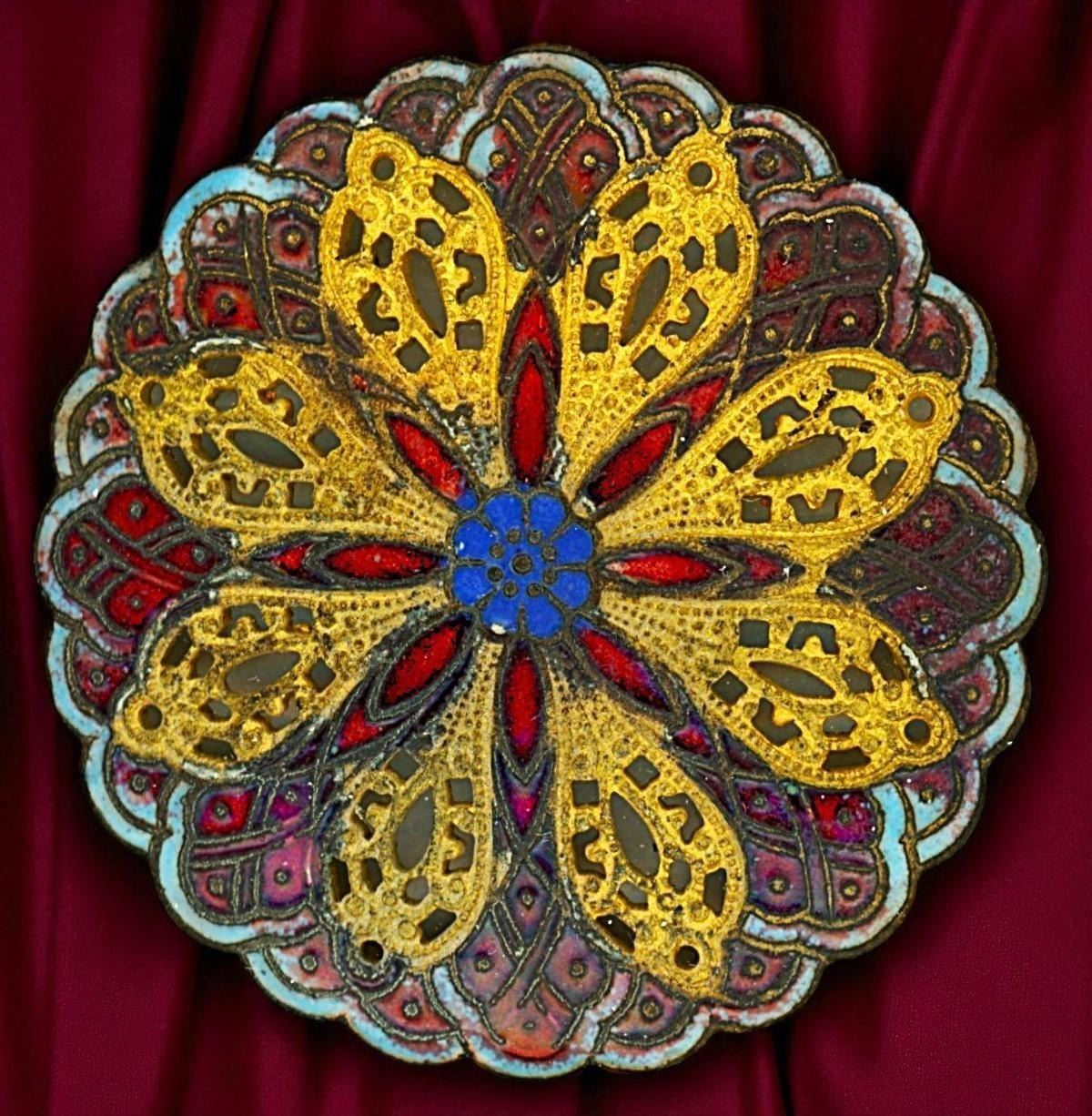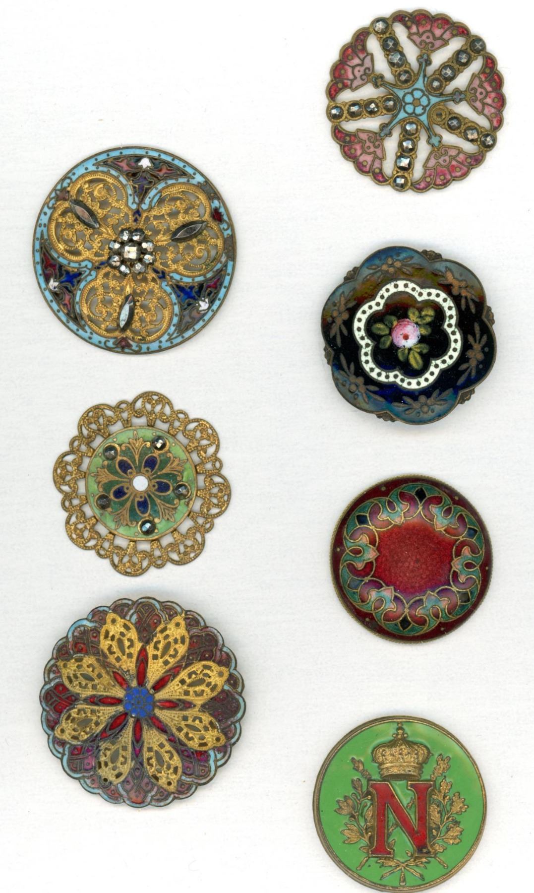 7 Large 19th century assorted technique examples. Here we have some colorful enamels including a verbal "N" for Napolean, several pierced, Champleve, Emaux Peints, and more,