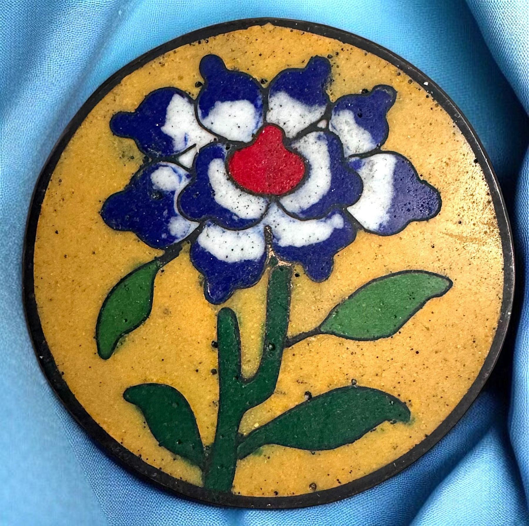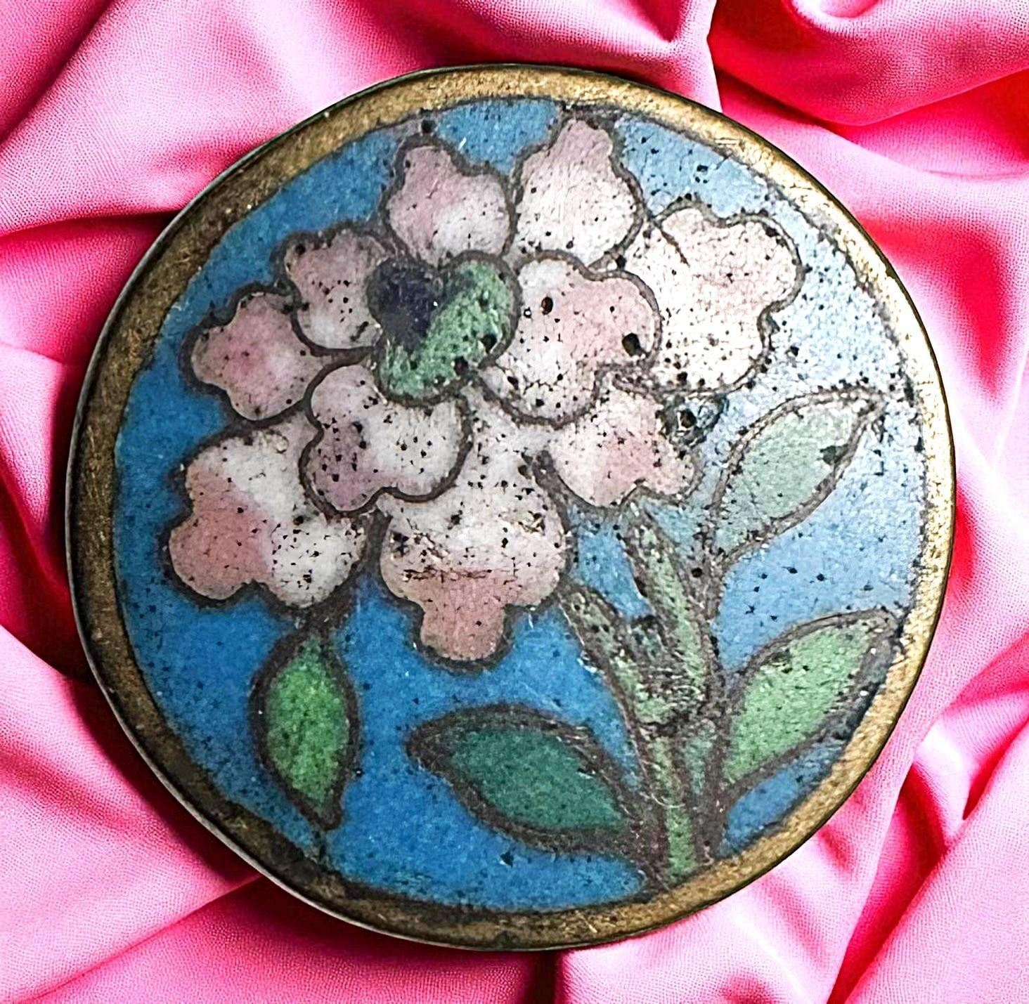 2 Medium/Large 19th century Chinese Cloissonne examples. Here are two heavy bronze and enamel floral buttons in the Cloissonne technique. These are from the buttons originally found by Aleth Allen of Florida in the new old stock found in China.