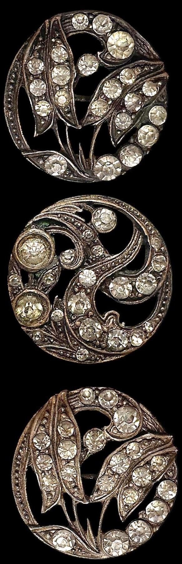 3 Lg. Med/Large 19th C. high quality silvered setting examples. These are those really beautifully made settings of pierced silver with brilliant paste jewels. This lot includes two pictorial examples and one pattern example. The large examples hang in the large measure because the silver design goes outside the border. Nice Lot.