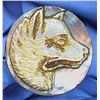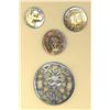 4 Medium/Large 19th century carved/pierced examples. This small card includes a wonderful carved dog head with gilding, a fabulous intricately pierced shaded pearl, a very nice carved and engraved bird in a horseshoe set onto a brown shaded pearl base, and a gilded carved and engraved roses example.