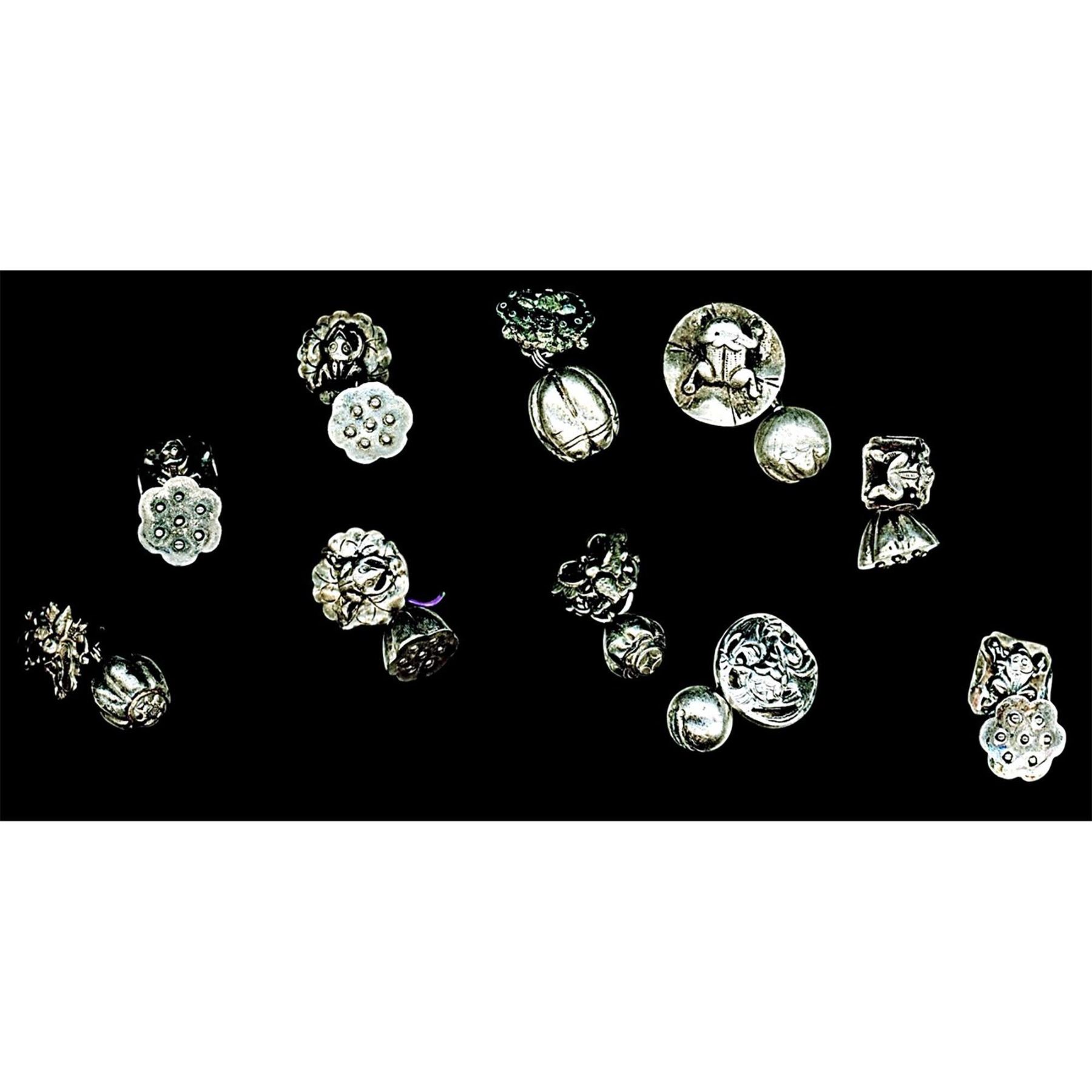 10 Medium late 19th early 20th C. toggles including pictorial. The late Pauline Lum of California specialized in these and collected a large selection of them over the years. Here are some very nice examples of these very cool buttons.