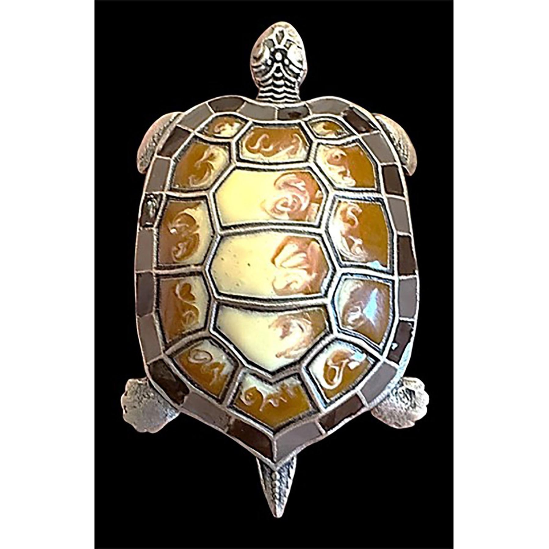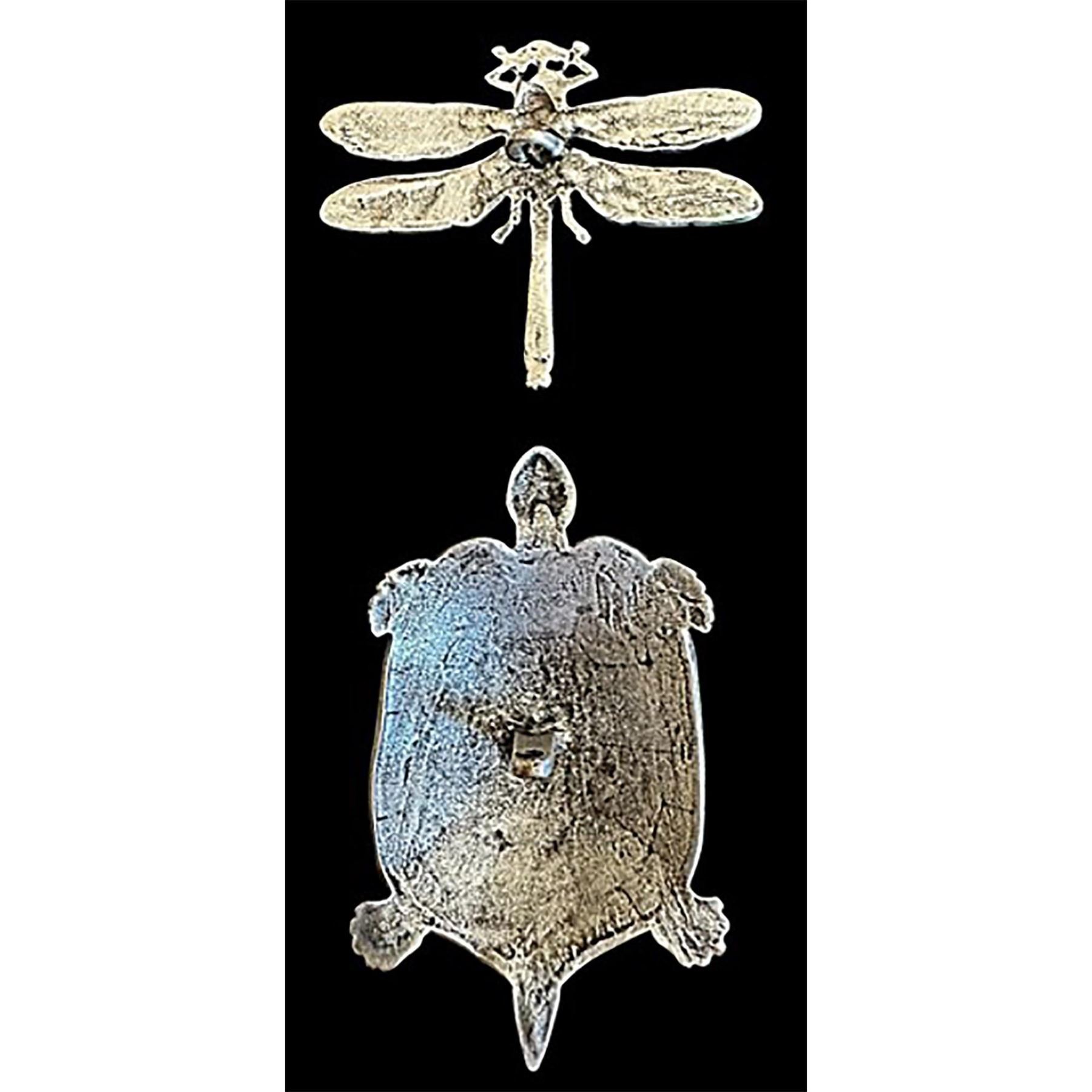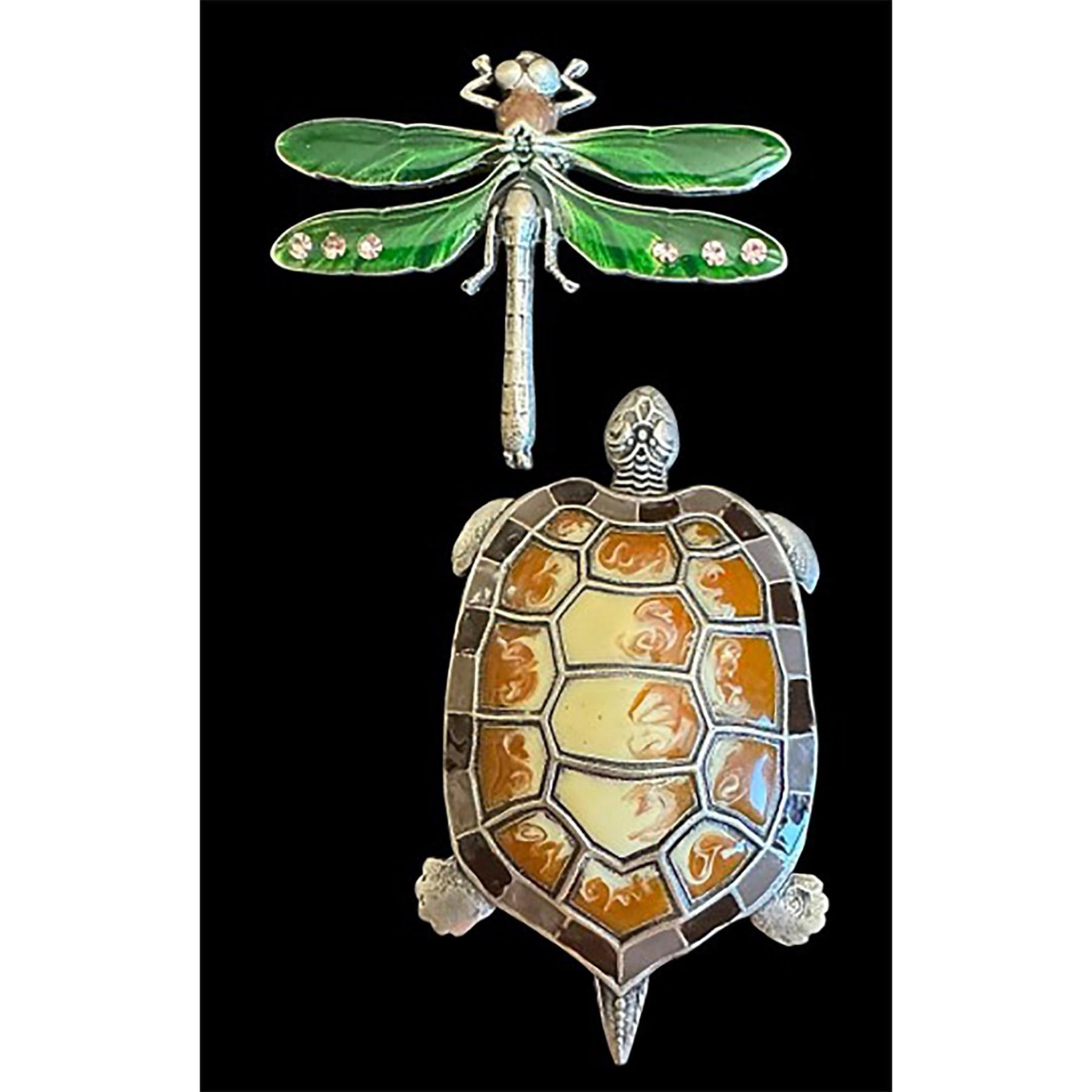 2 Extra large late 20th century realistic CPE buttons. Here we have two very high quality Cold Plastic Enamel buttons. One depicting a turtle and the other a dragonfly with green and paste under wings.