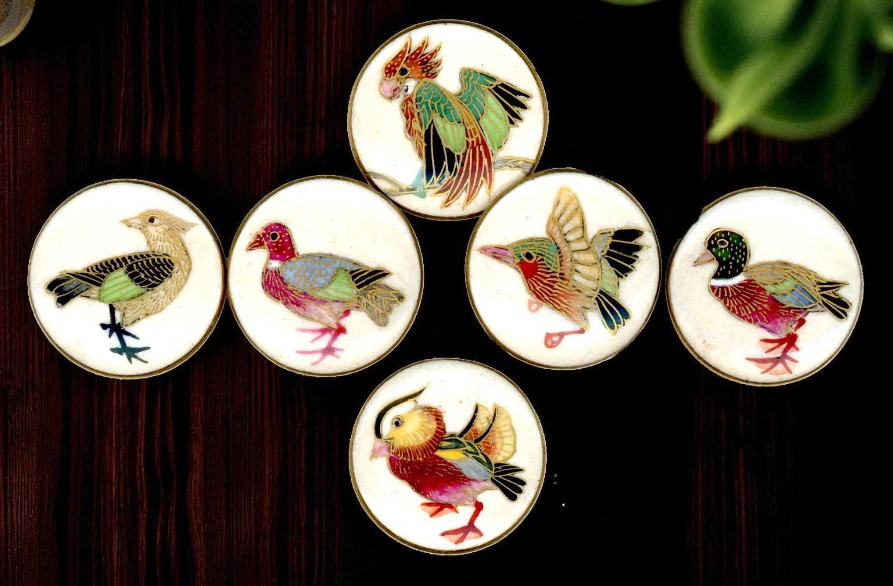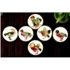 6 Medium 20th century assorted pictorial examples. Here is a beautiful set of 6 different colorful and detailed birds on Japanese Satsuma earthenware. These are exquisitely done.
