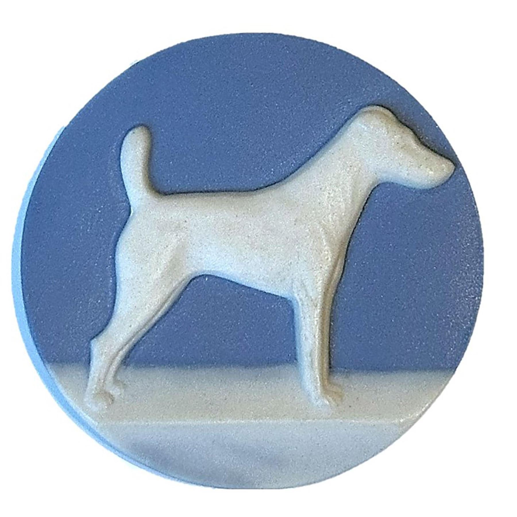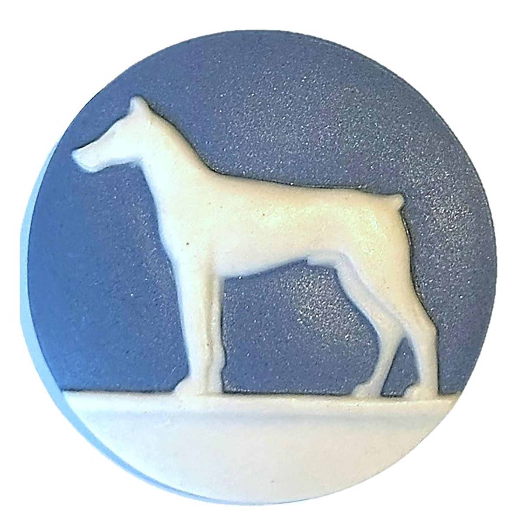 2 Large 20th century "Wedgwood" blue Jasperware DOG buttons