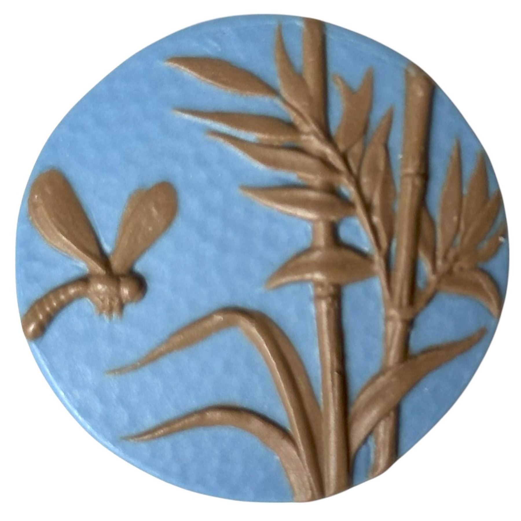 2 Large 20th C. unusual color combination Jasperware buttons. The examples being offered in this lot from the studios of the late Stella Rzanski are a more unusual and quite limited edition of the more typical colors used in her work. These were specially commissioned examples. These are not easy to find examples.