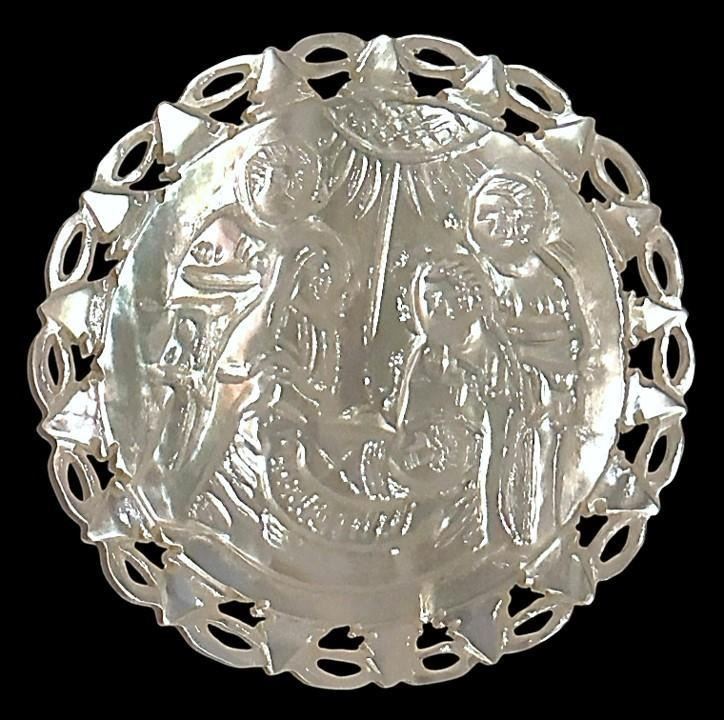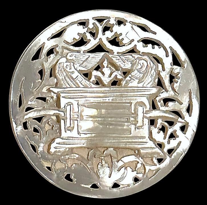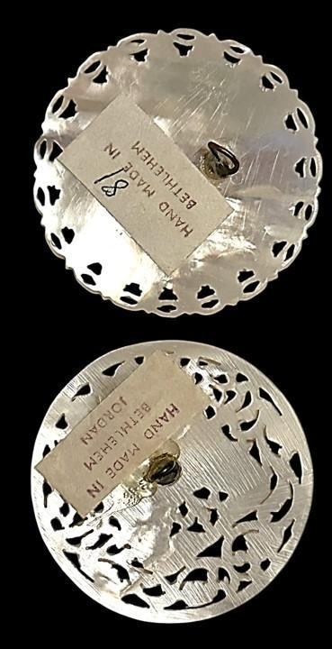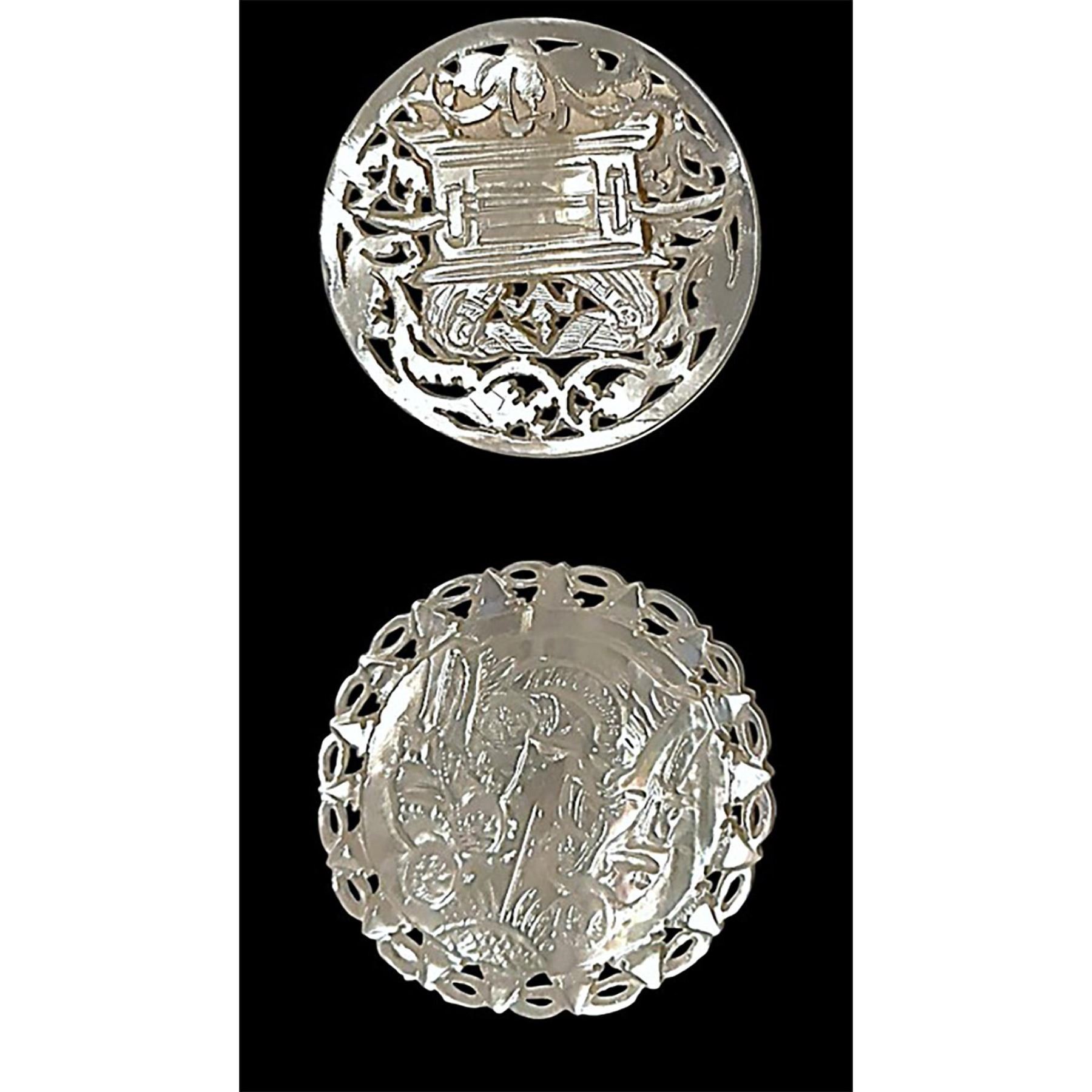 2 Large 20th century carved Bethlehem Pearl examples. Here we have two different pictorial examples from the early 1930's when these buttons were hand carved.