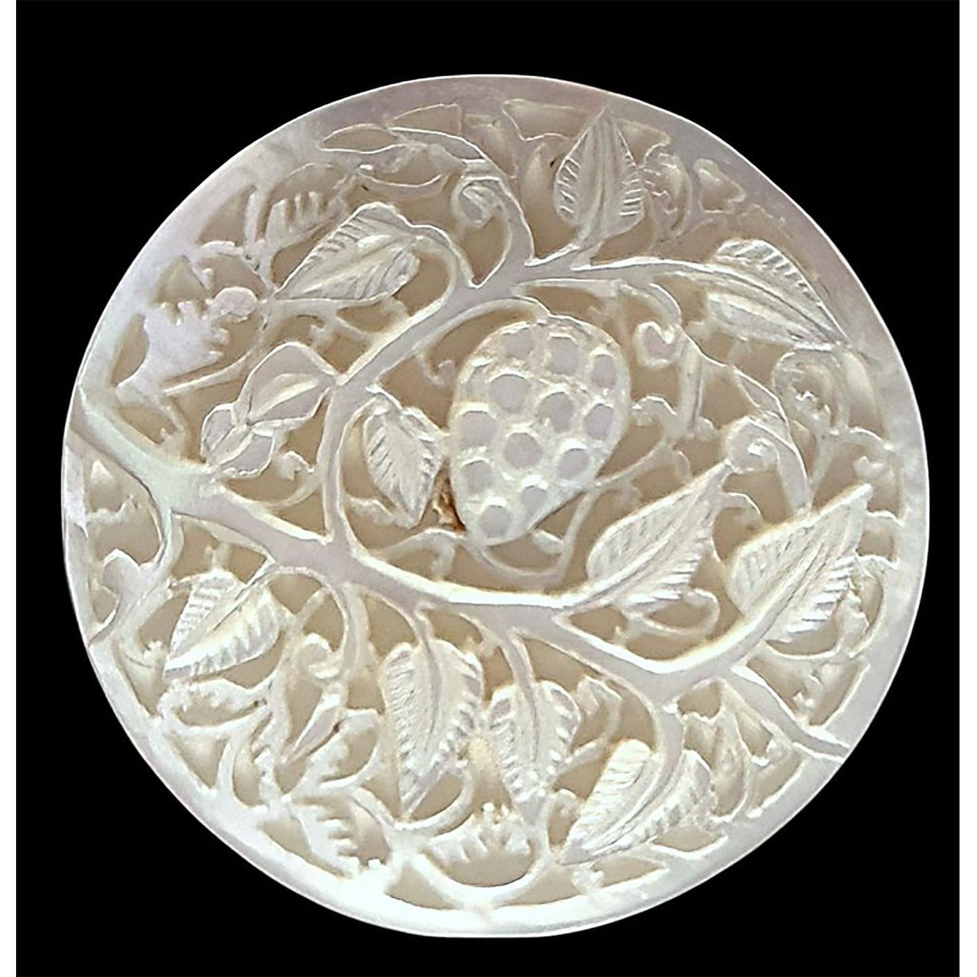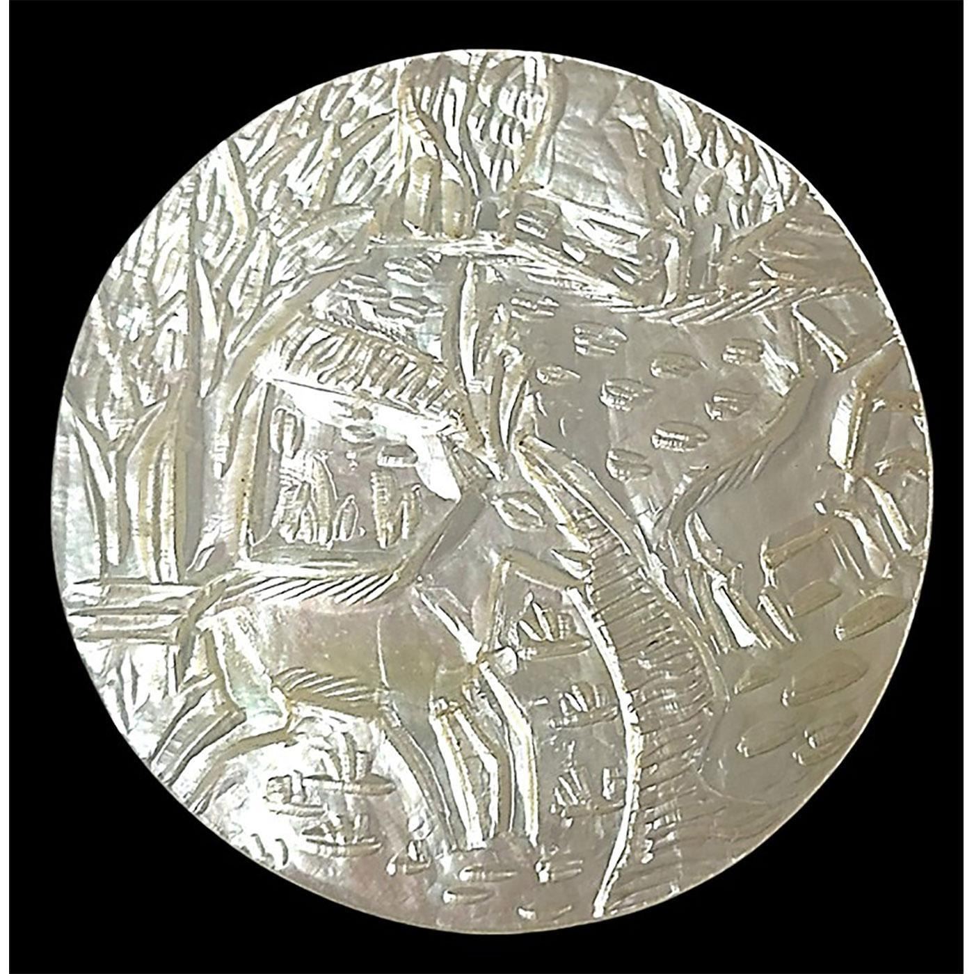 2 Large 20th century carved Bethlehem Pearl examples. Here we have two different pictorial examples from the early 1930's when these buttons were hand carved.