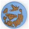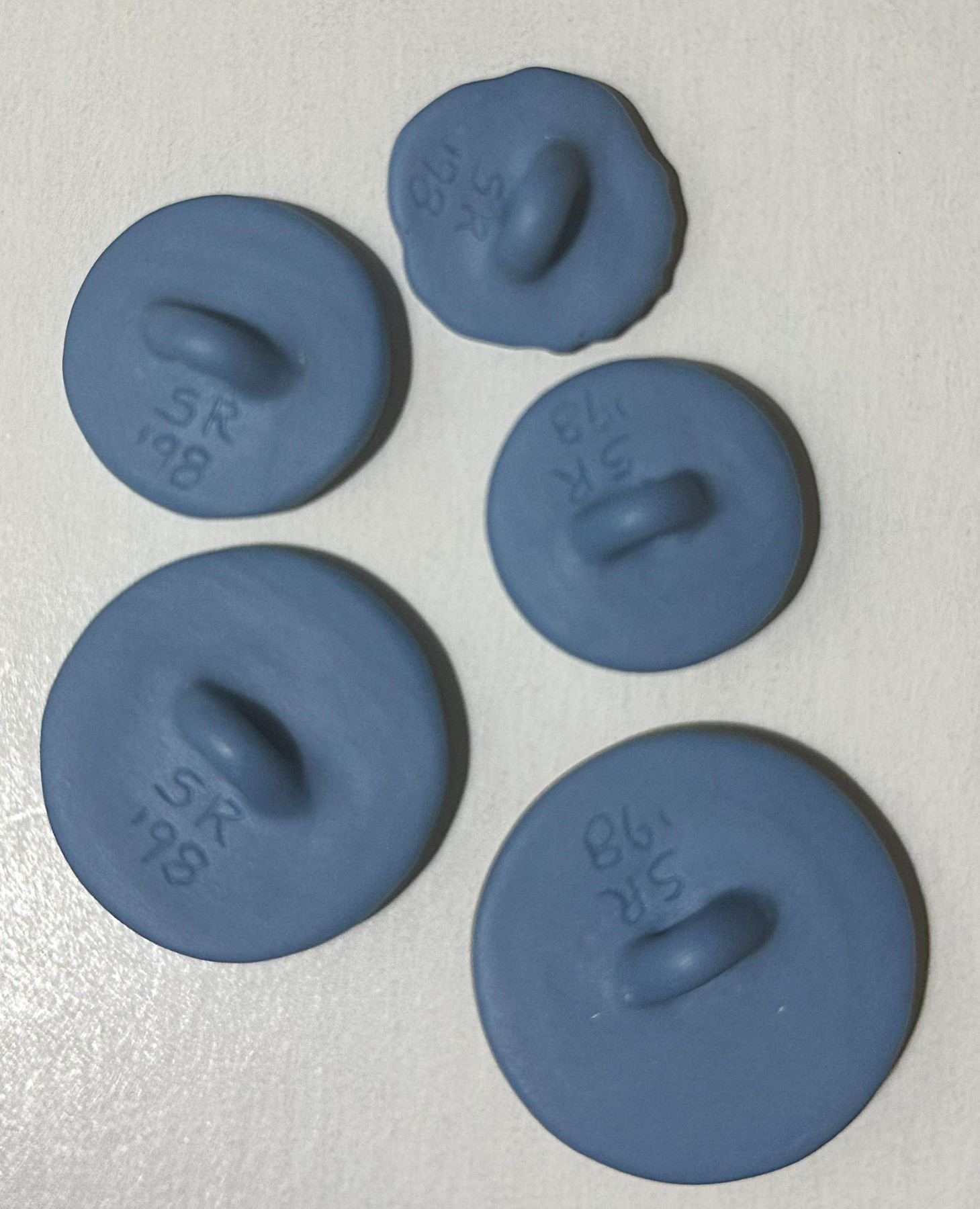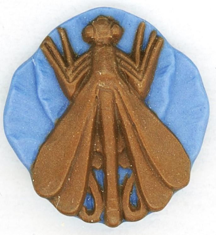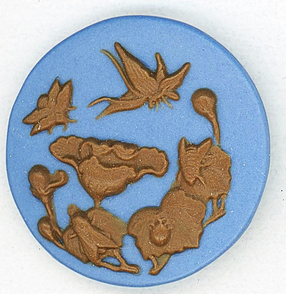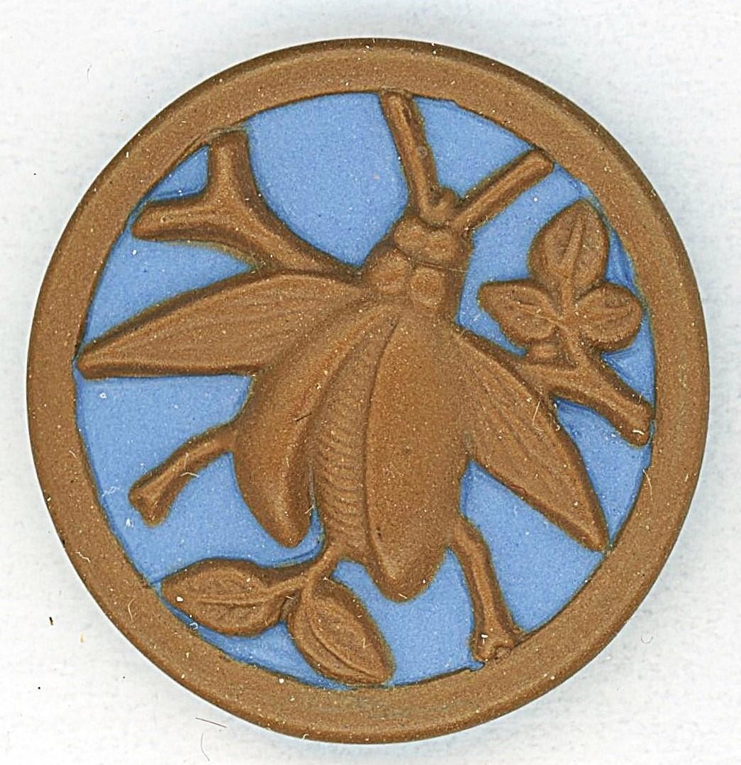 5 Medium size 20th century Scarce color Jasperware examples. This card of Insect Jasperware buttons were custom made by the late Stella Rzanski and were made in a coloration of blue and brown which was an unusual and now hard to find coloration.