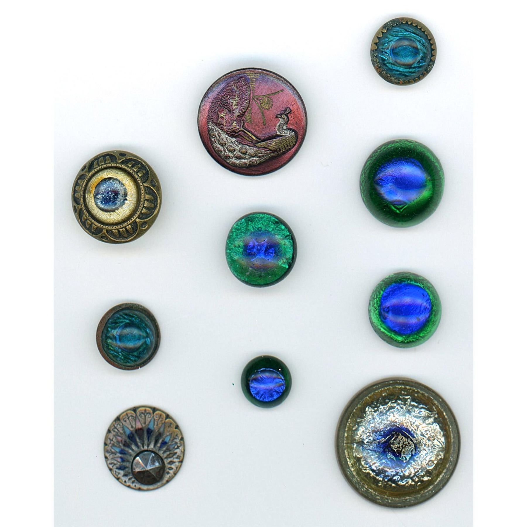 10 Small/Medium early 20th century peacock & peacock eye buttons!