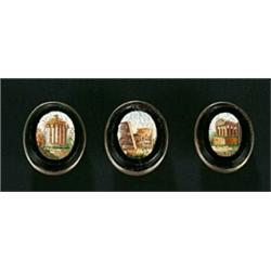A small collection of jewellery, comprising; three round micromosaic collar studs depicting class...