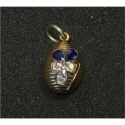 A small gold pendant of ribbed ovoid form set with two sapphires and three diamonds as a flower, 30.
