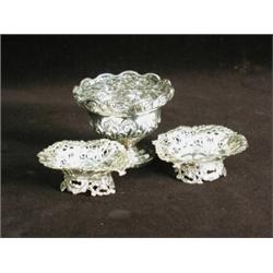 A small silver rose bowl with repousse decoration, Chester 1898 (?), 9cm diameter, and a pair of...