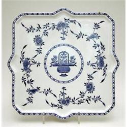 A square blue and white bone china serving plate printed with Onion pattern in Meissen style, 15ins £70-100