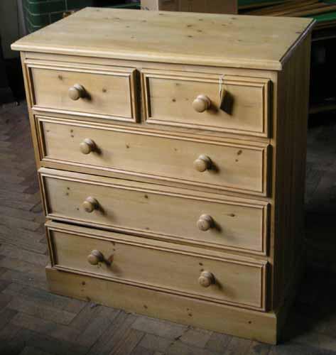 A stripped pine chest of drawers, H 102cms W 92cms £50-80