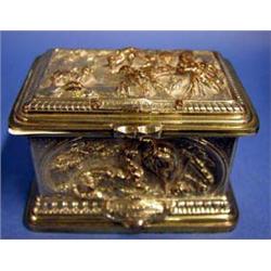 A superb plated casket fully embossed with hunting dog scenes etc, French C1910.