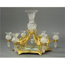 Gilded brass and cut glass , empire style, height 32 cm, diameter 42 cm; insignificant chips, one vase later