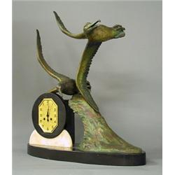 patinated bronze and stone, signed RULAS, France, Art déco, height 64 cm, length 56 cm