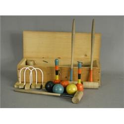 A table croquet set, with balls and hoops, box 30cm long Est. 100/150...