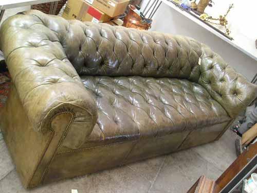 A three-seat Chesterfield settee covered in deep-buttoned hide, L 230cm £300-500