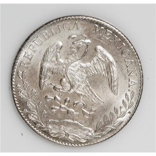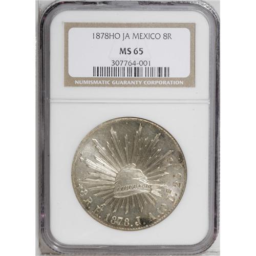 <B>A trio of Car and Ray 8 Reales as follows:</B></I> 1893 As-ML 8 Reales, Choice UNC; 1878 Ho-JA, MS65 NGC; and an 1858 Mo-FH, MS62 ANACS;