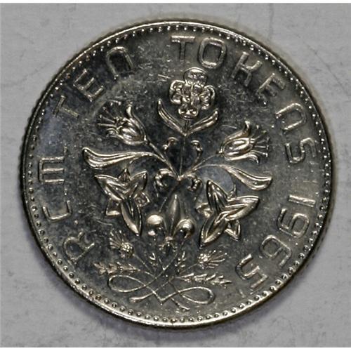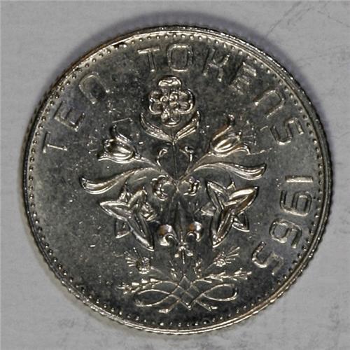 <B>A trio of Test Tokens as follows:</B></I> 10 Cent 1965, TT-10.1A, lightly abraded UNC; 10 Cent 1965, TT-10.1B, Choice AU; and a 25 Cent 1965, TT-25.1B, XF.