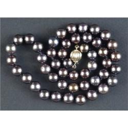 A uniform row of stained grey cultured pearls, - A uniform row of stained grey cultured pearls,...