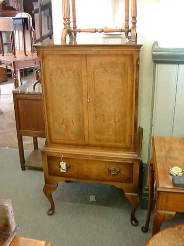 A walnut and feather-banded side cupboard, on cabriole legs, H 126cms W 65cms £100-160