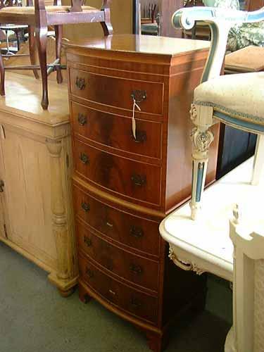 A walnut bow-fronted chest on chest of six drawers, H 133cms W 55cms £60-80