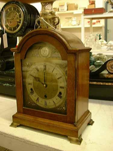 A walnut quarter-chiming bracket clock, by Armstrongs, Manchester, having eight-day movement, H 37cms W 26cms £80-120
