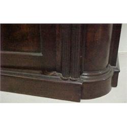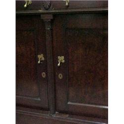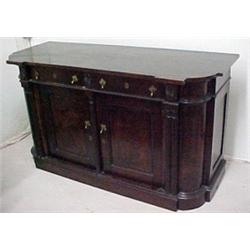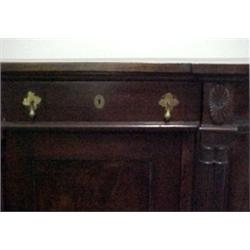 A walnut sideboard, formed top over two short drawers over two recessed paneled doors flanked by a pair of fluted columns and center column, molded base, crack in top, 19th C. Estimate 800/1500
