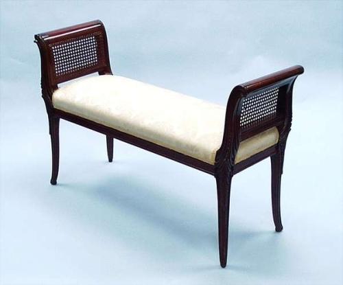 A well carved Chinese redwood framed window seat. 41" long, 13" deep. 800-900