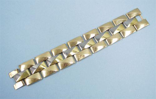 A wide 18 kt. three tone gold bracelet designed o